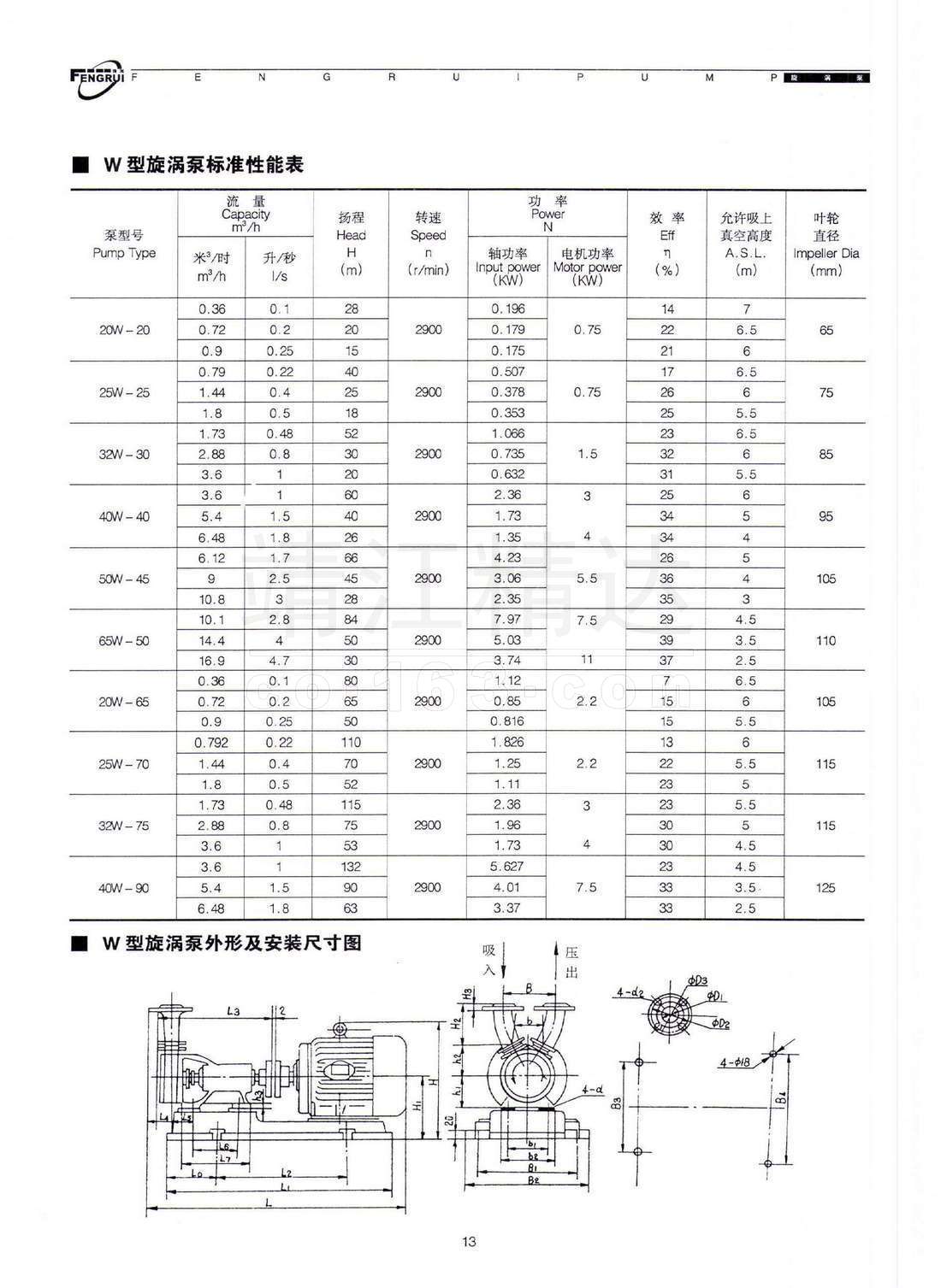 WB 型旋涡泵用于输送温度从 -20 ℃ ~ 80 ℃ , 粘度不大于 5 ℃ , 无腐蚀性和具有腐蚀性的无固体颗粒的液体 .